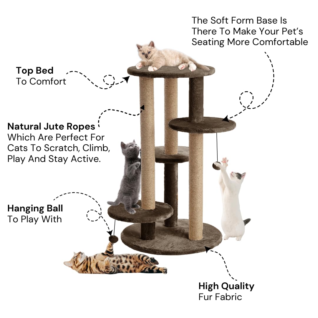 The FURRLOVERS Cat Tree (FURR-11) is designed for modern Indian homes that want a compact yet functional cat furniture piece. Standing at just 92 cm, it fits into apartments without occupying much floor space, yet provides four levels of entertainment for cats.